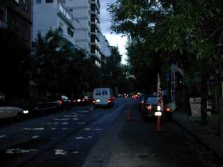 3の位置での写真は、ご覧のように、路面電車が走るにしては狭い道路です。この附近は高級住宅街で、防犯のためか前を通るとセンサーが反応してポーチの明りが灯る家が多くありました。