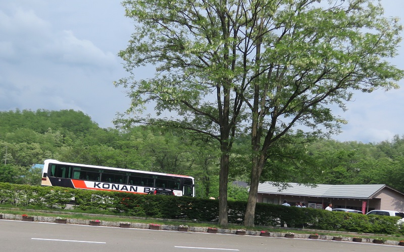 本来はバスの後ろに雪山がくっきり見えていたんですがコンデジではコレが限界。