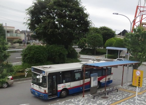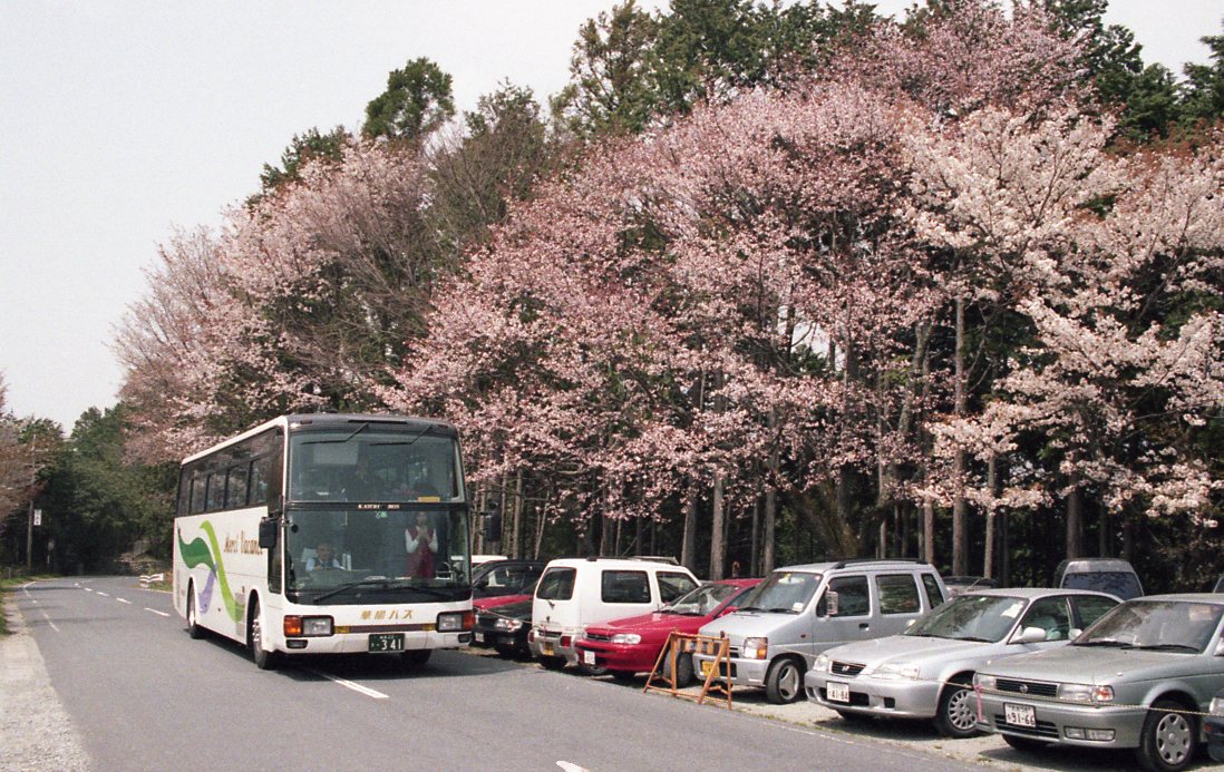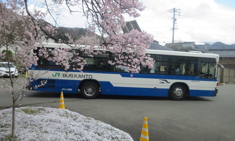 こんな立派な桜が植えてある理由はバスが停めてある場所がかつては駅だったから。