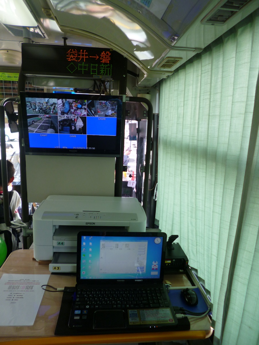 運転席後ろに搭載されているパソコン、プリンター、モニターです。