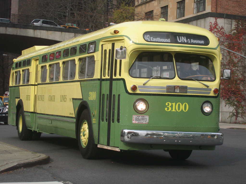 12月中の平日、ニューヨーク市内の路線(M42)に、GMの金魚鉢などと一緒に充当されてます。
