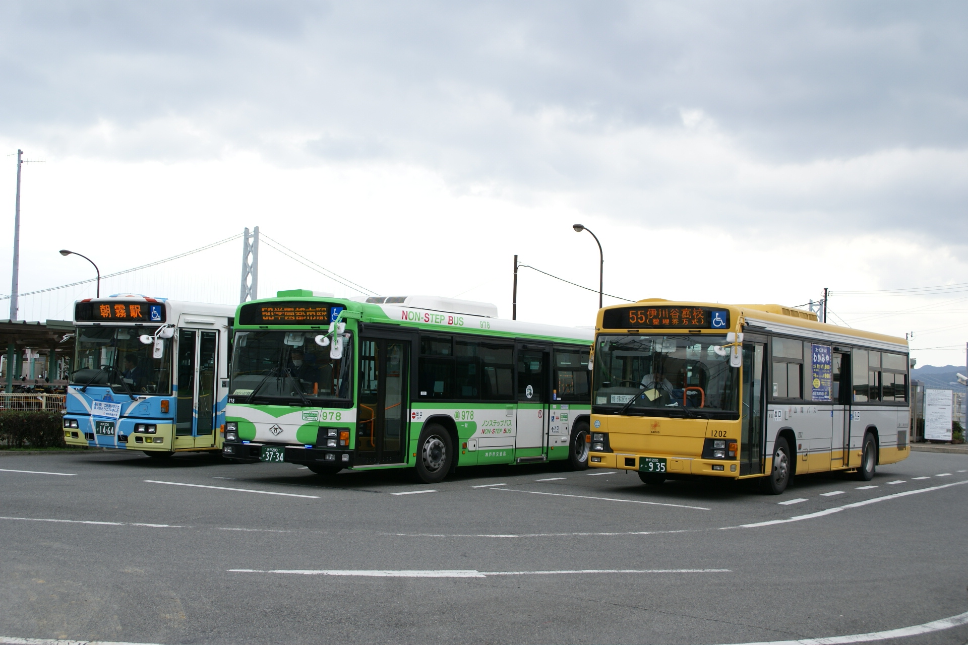 明石市交通部、神戸市交通局、山陽バスの三社局並び。