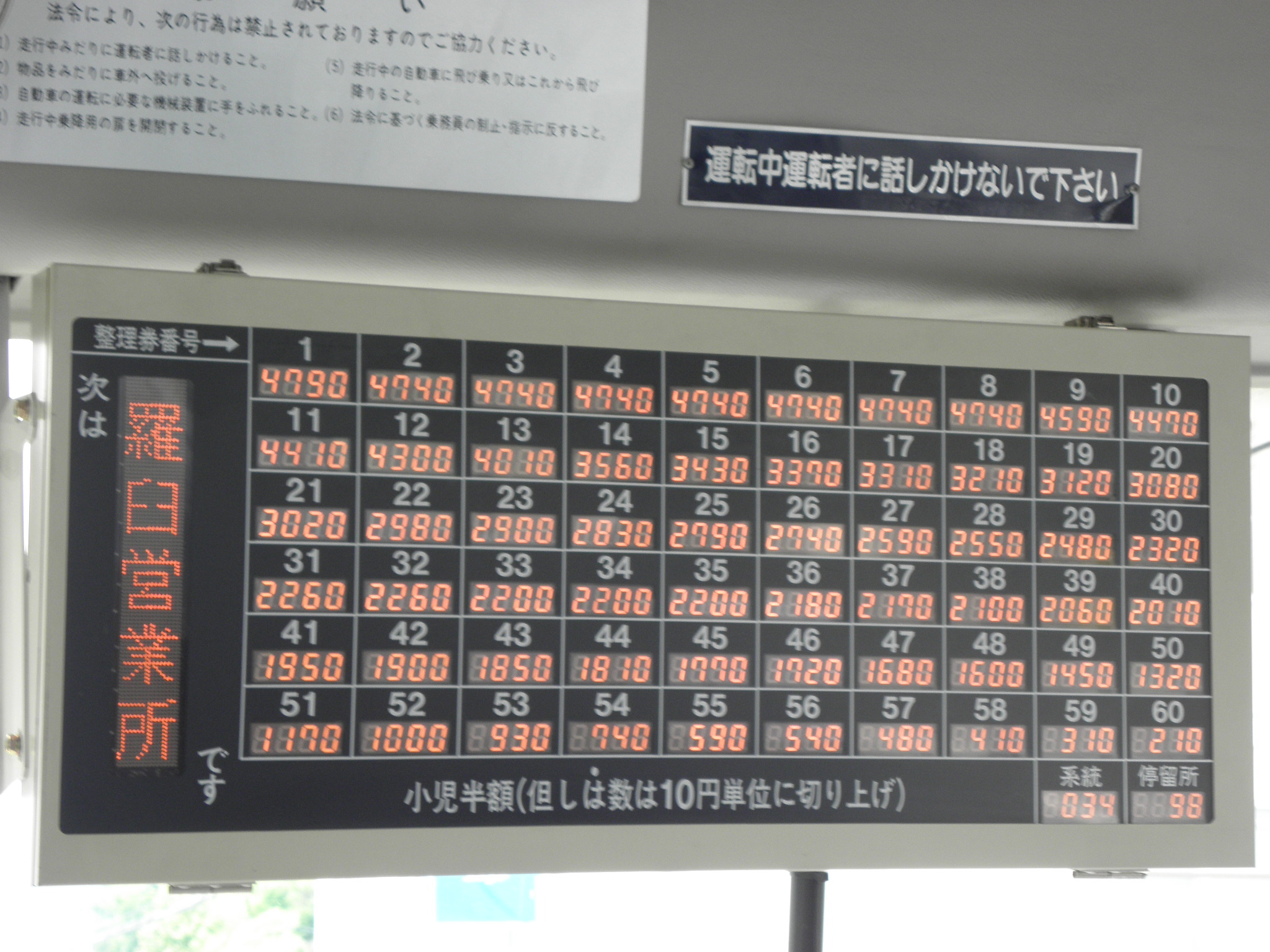運賃表より、右の「急ブレーキに注意」の方に目が行った。