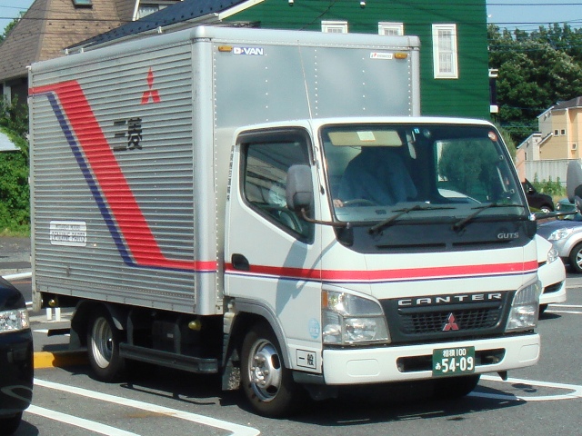 以前、ほぼ同じ塗装で側面の表記が「三菱」じゃなくて「FUSO」のキャンター(多分ふそうディーラーへの純正部品輸送車)が走っているのを見掛けたのだけど、カメラ取り出す間もなく走り去って行ってしまった。