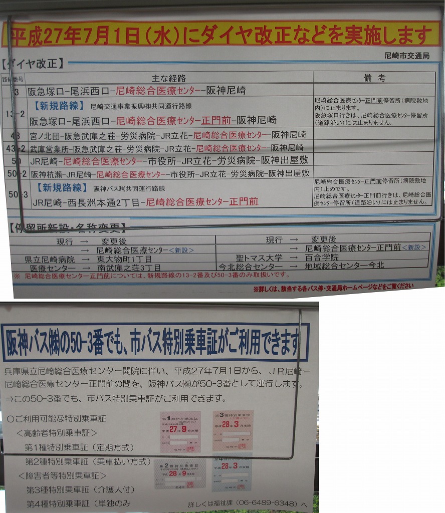 今回の改定で目立つ点はJR尼崎から総合医療センターまでの【50-3系統 JR尼崎-総合医療センター】を阪神バスと共同運行で新設する点です。