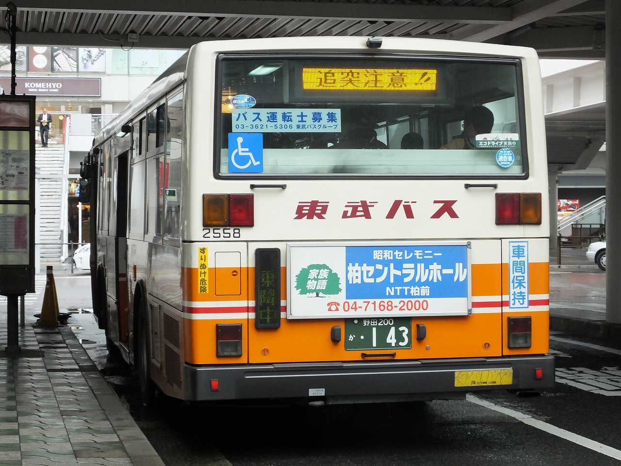 東武バスセントラルの車は、リアに「追突注意」を出してるのを見たことがあるなぁ。